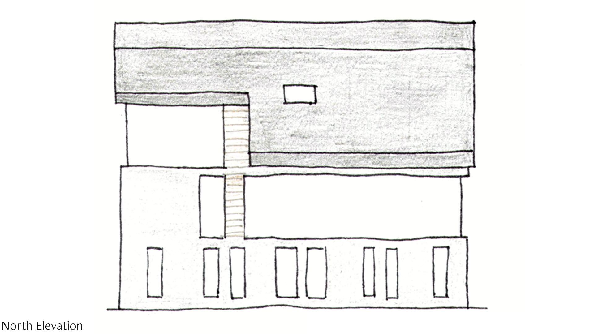 The front door is made from steel that has insulation between it. This material will be able to withstand the harsh wind and rain while not letting any warmth escape the home. The door is two metres in height to emphasise the verticality of the home.
