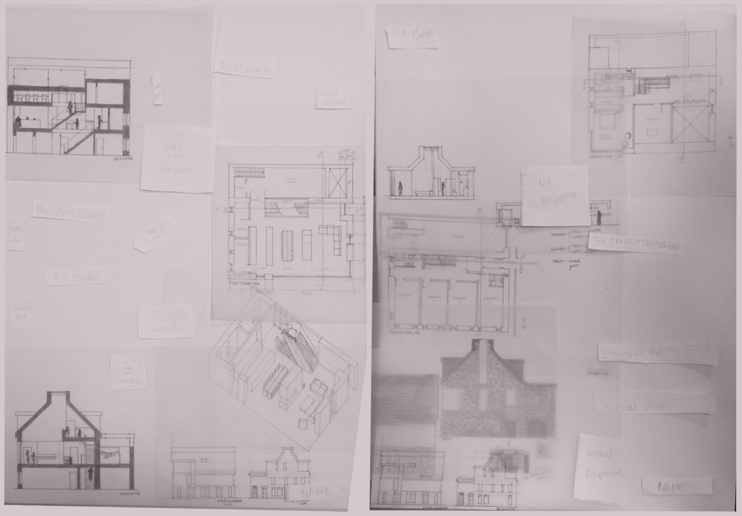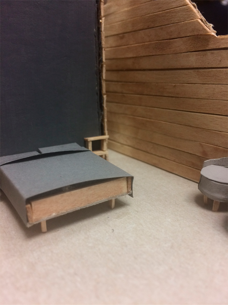 This was my third-year college project. I was given pre-designed house plans with a general layout of the rooms as a starting point for the project. The house is located on the side of a sea cliff. The focus of the design was connections: the house connects to the context through similarly coloured materials; the interior elements connect to the house through materials; connections to the surrounding context through views. The house, its elements and context are one.