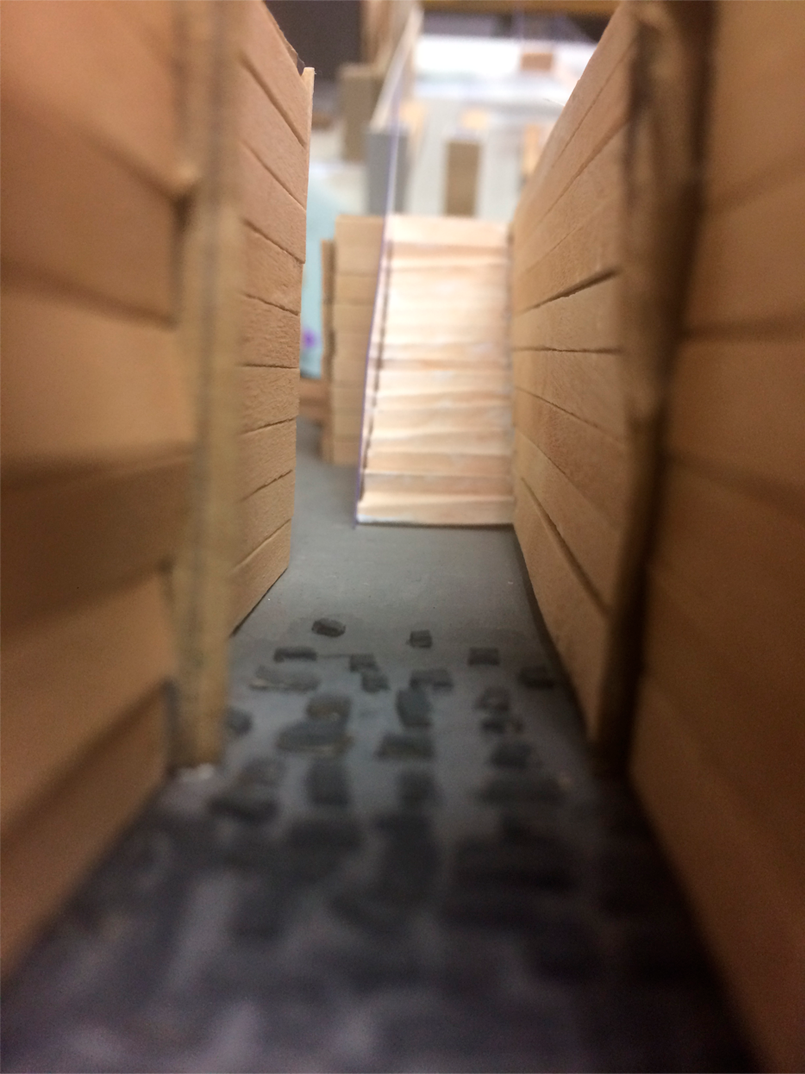 The idea of having the outside transitioning into the inside can be symbolic or can be shown more literally through the use of materials. Cobble stones flank the path outside and gradually fade away the further into the house you go. The user knows they are home when they feel the concrete floor and timber walls in the threshold. The continuation of these materials around the house connect it all together.