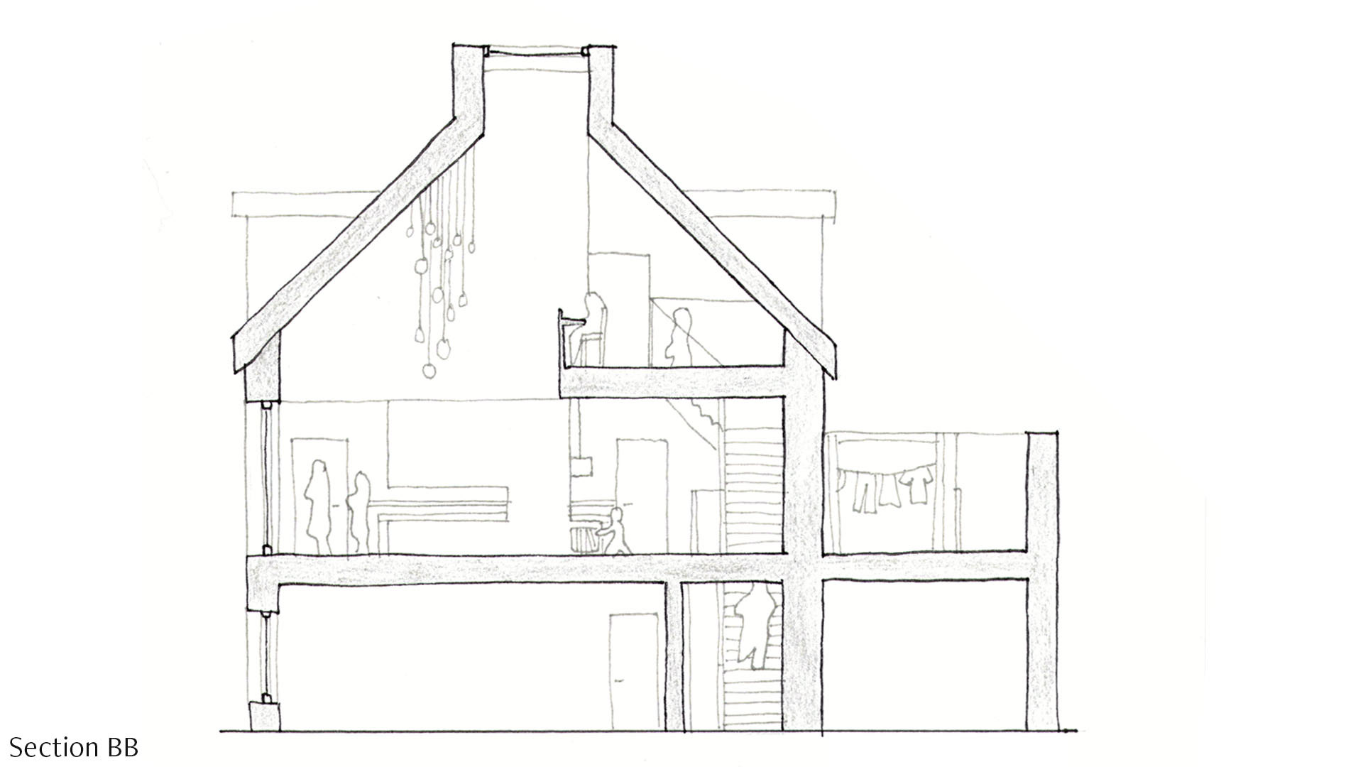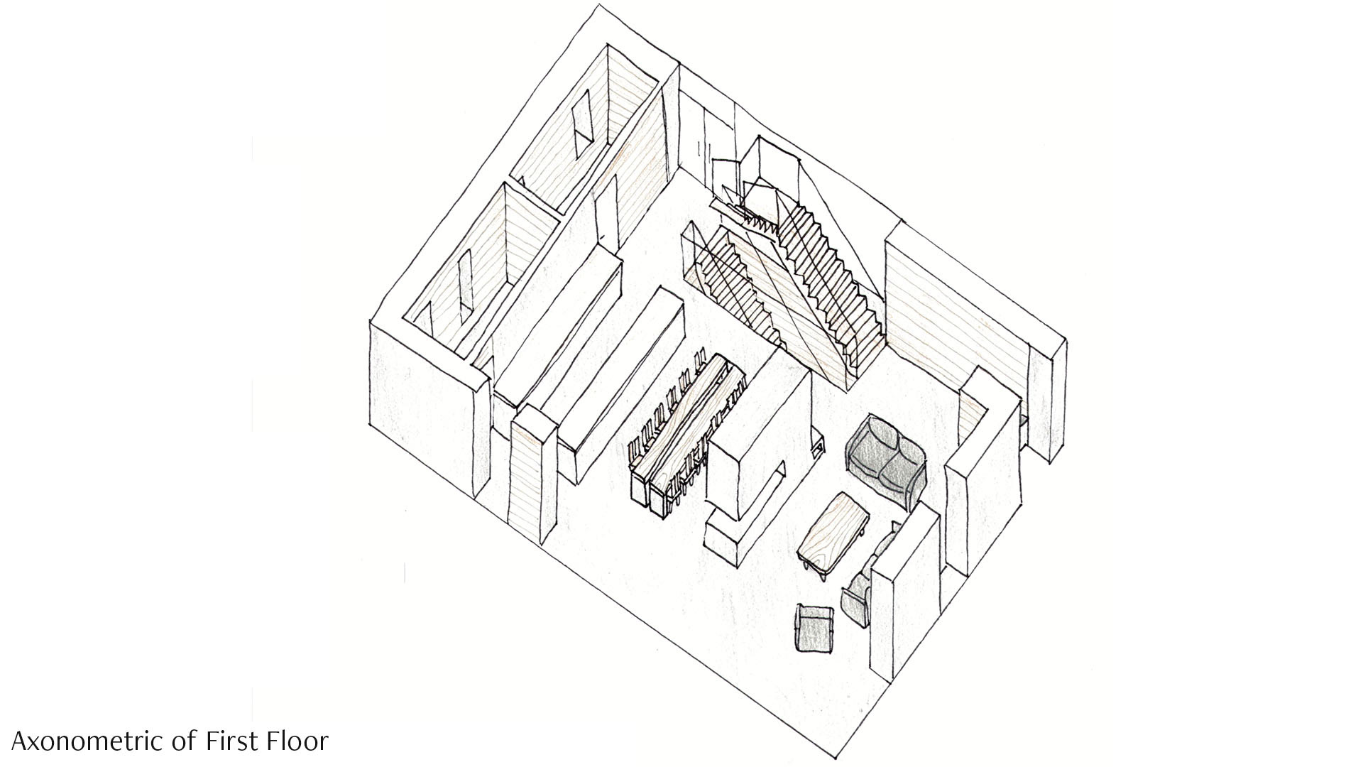From this, the design of the hearth is re-imagining it as the centre of place in a modern home, bringing back the multifunctional purpose it once had. The hearth is open on three sides, linking the dining space and living space. The storage shelf can be used for books which connects the window seat to the centre of place as well.